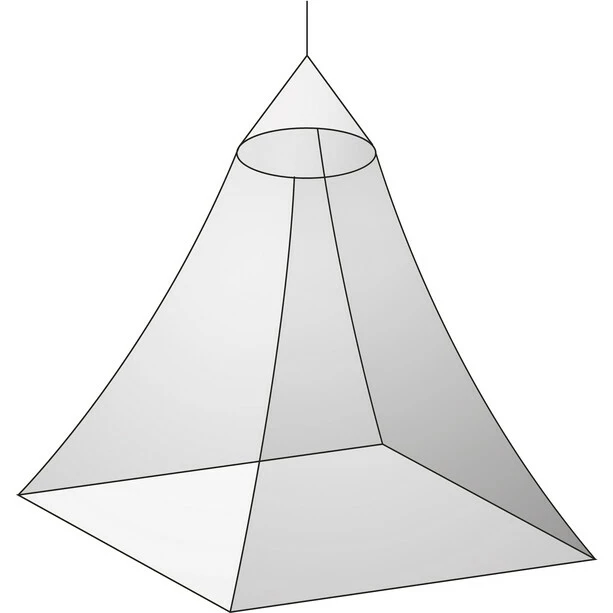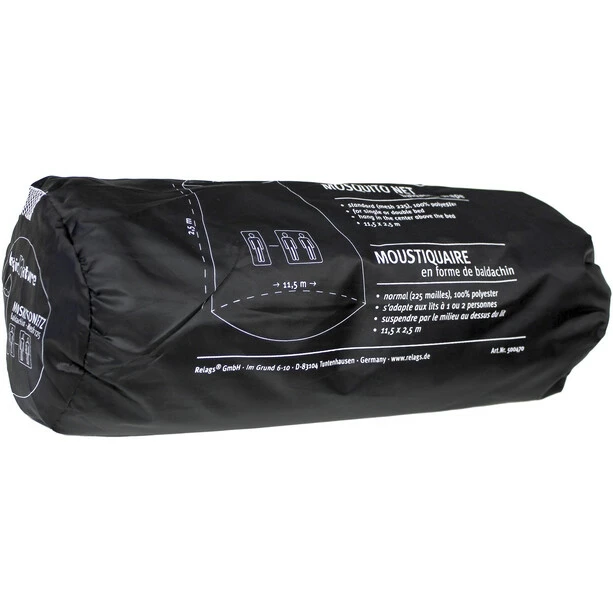 A Baldachin in white mosquito net. Complete with suspension hook and stuff sack. Comfortable proportions – 2.5 metres high and 11.5 metres circumference. The net is open on one side with an overlapping entrance ensuring easy access.