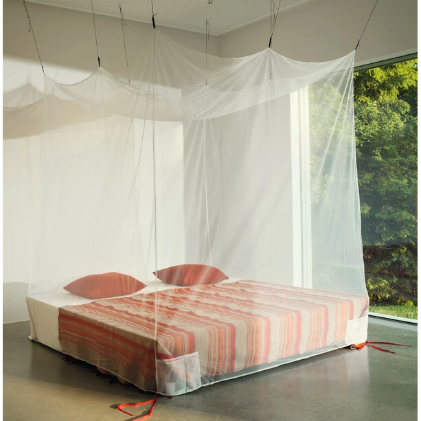 The Mosquito Box Net Double offers a lot of space inside the net and comes with loops on top, a 12 m long cord and hooks for the ceiling.